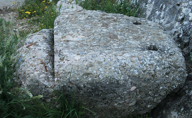 A stone discarded near a Bronze Age palace, midway through the process of being cut