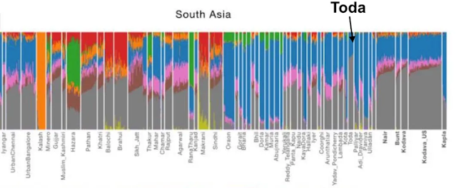 A new paper on Southwest Indian genetics highlights the Toda sample from Genomes Asia. People . . . have asserted this small southern tribe may have the most “Indus Valley Civilization” ancestry in the subcontinent. This is perhaps an exaggeration, but, looking at the admixture plots the Toda clearly have hardly any steppe ancestry, but a lot less “ASI” [ancestral South Indian] ancestry than their tribal neighbors, with the balance being something like the IVC ancestry.