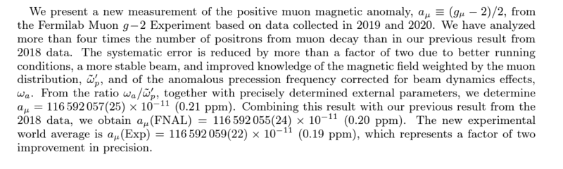 Fermilab's new August 10, 2023 paper and its abstract described it latest improved measurement of muon g-2: