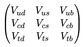 The full CKM matrix in a global fit per PDG (which differ from the FLAG values above):